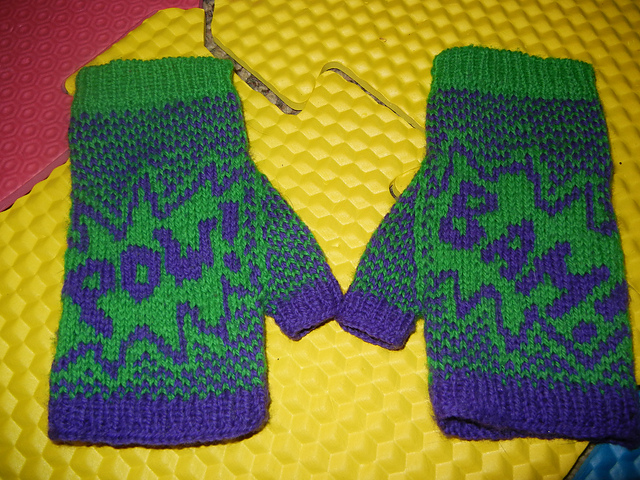 I decided that if I wanted to continue to knit socks, I need some help. I went out and bought Teach Yourself Visually Sock Knitting by Laura Chau. First pattern I knitted out of it was the Worsted Boot Socks. I hand dyed some yarn with Kool Aid and had no real plans for it, so it became socks. This pair fit much better mainly due to the ribbing pattern. But worsted socks are a little unrealistic for every day wear.